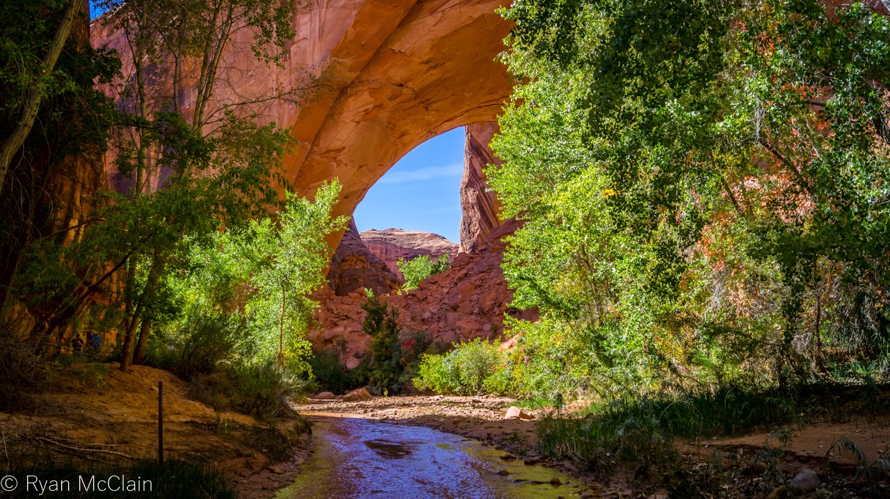 After visiting the arch my initial inclination was to make a base camp but there was far too many people in and around the arch for me to feel comfortable leaving all of my gear. Since my pack was only 35lbs I just kept going. I passed the waterfall that inspired my new found obsession with photography, another falls under a boulder, and Coyote natural bridge on my way to see the last waterfall in the canyon and of course Cliff arch.